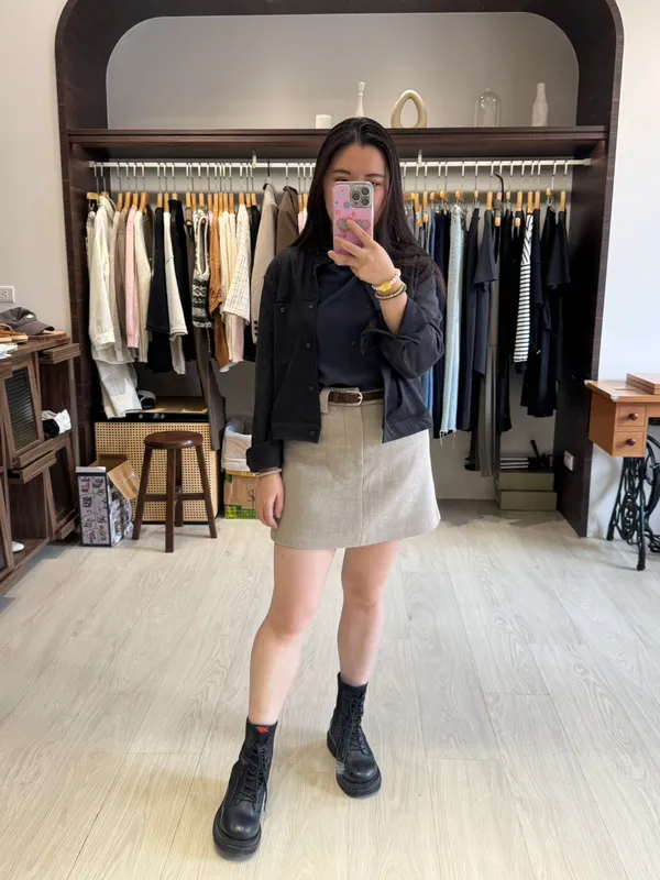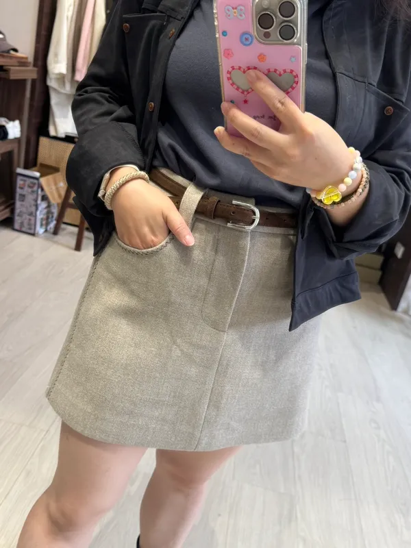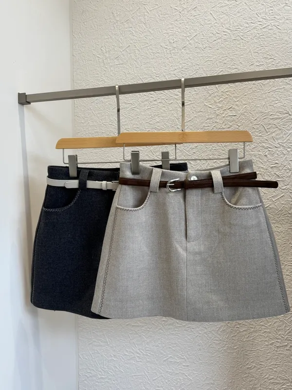 毛呢挺料短裙