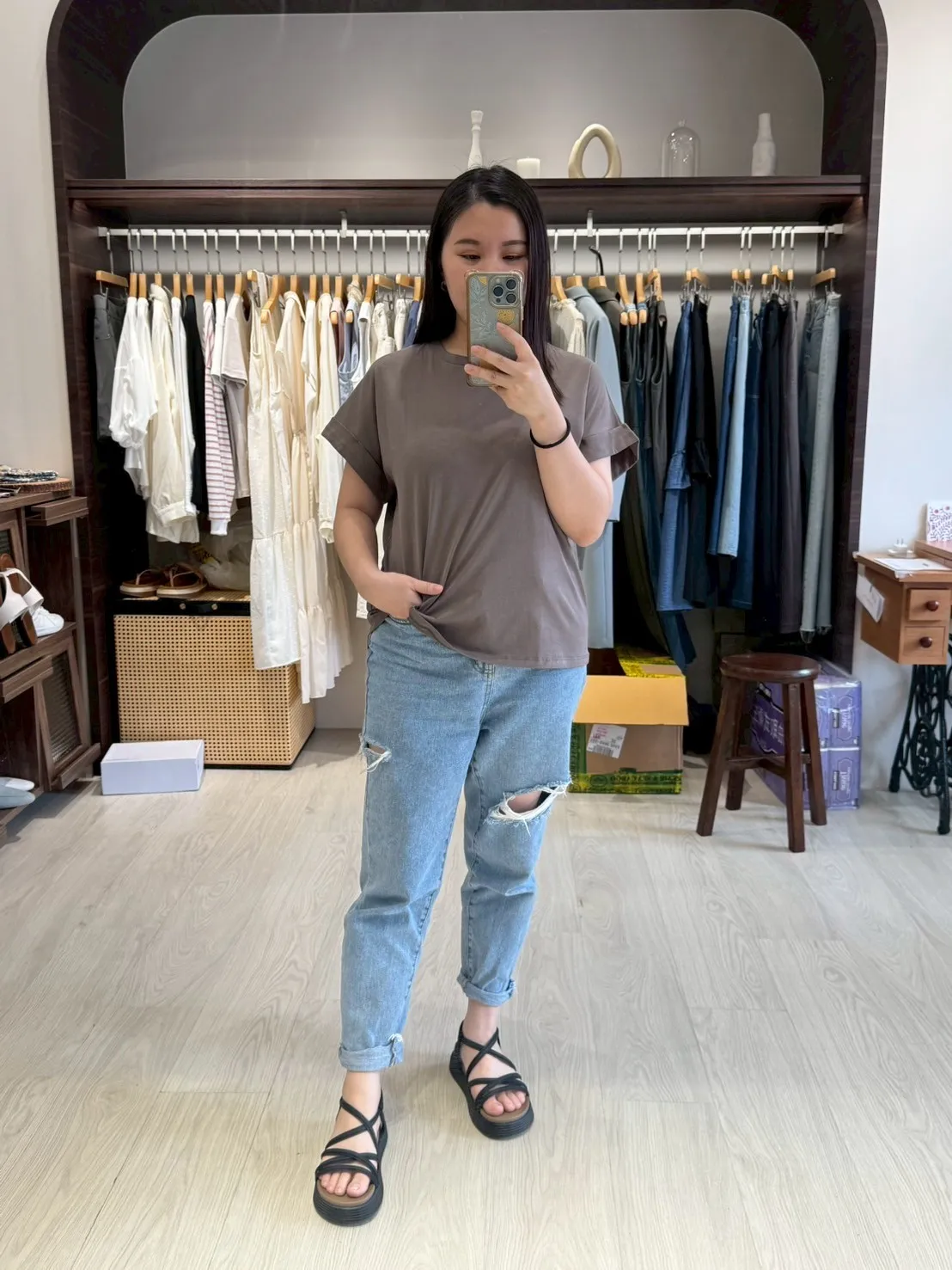 KT50608 反摺袖實穿素T