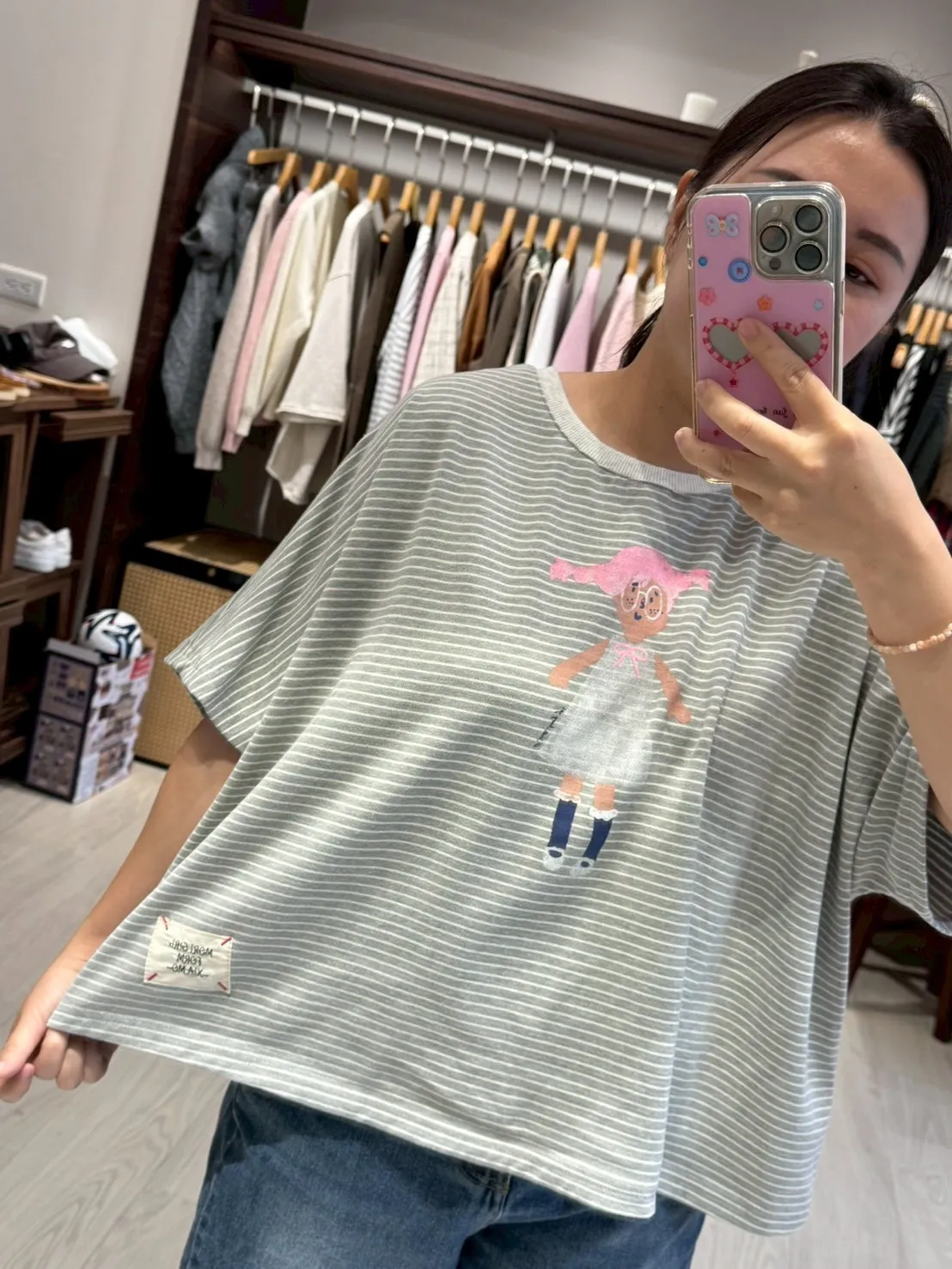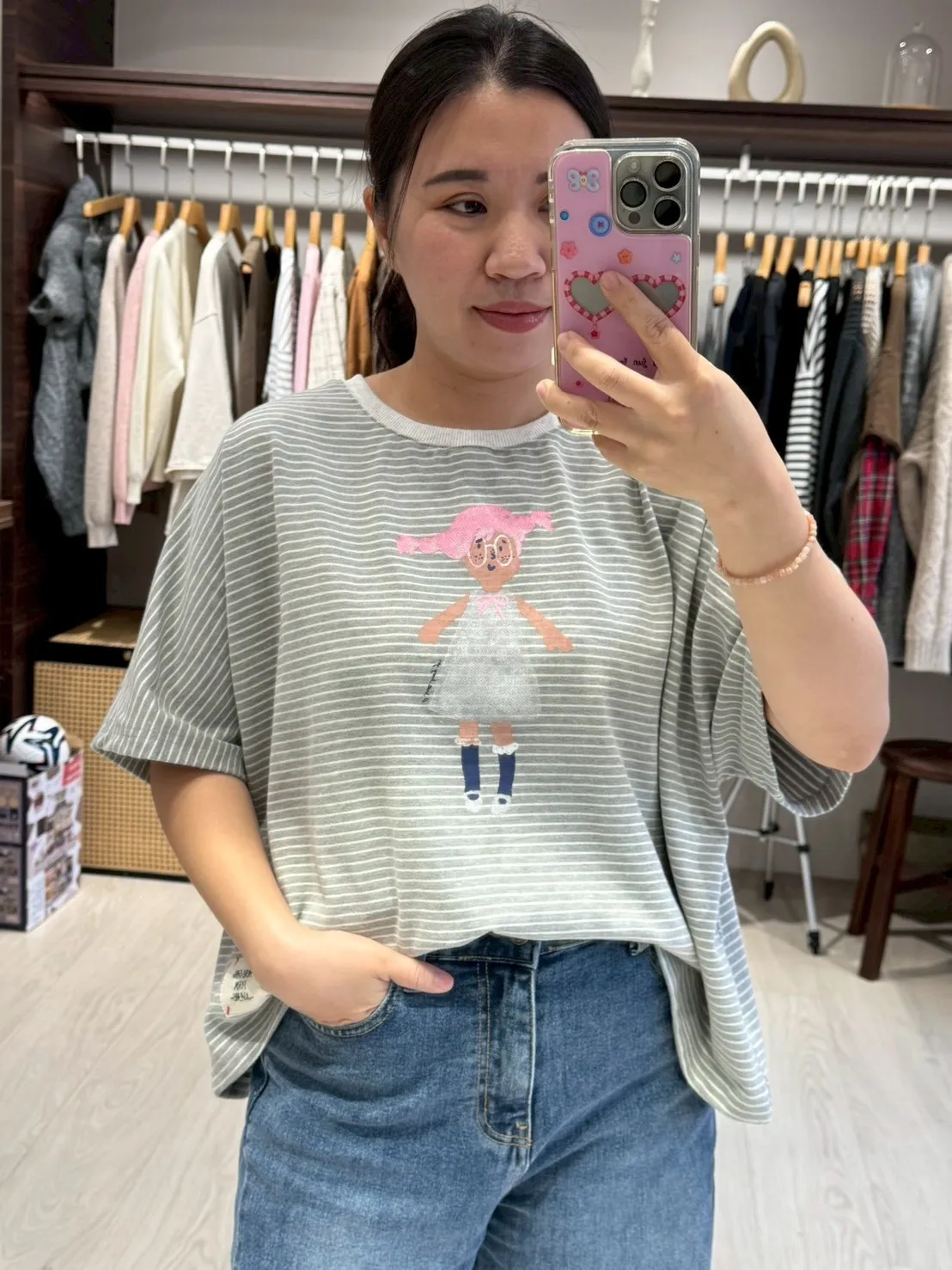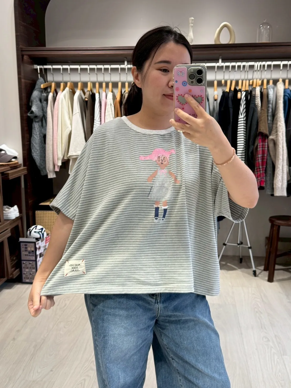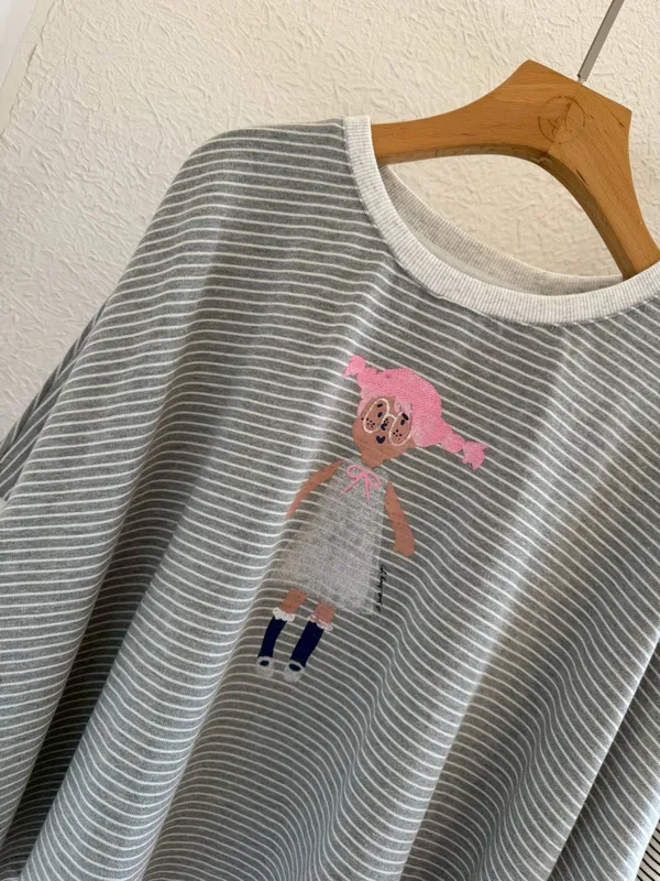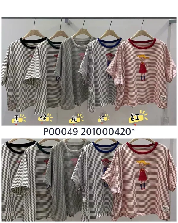 KT60308 眼鏡小女孩橫紋T