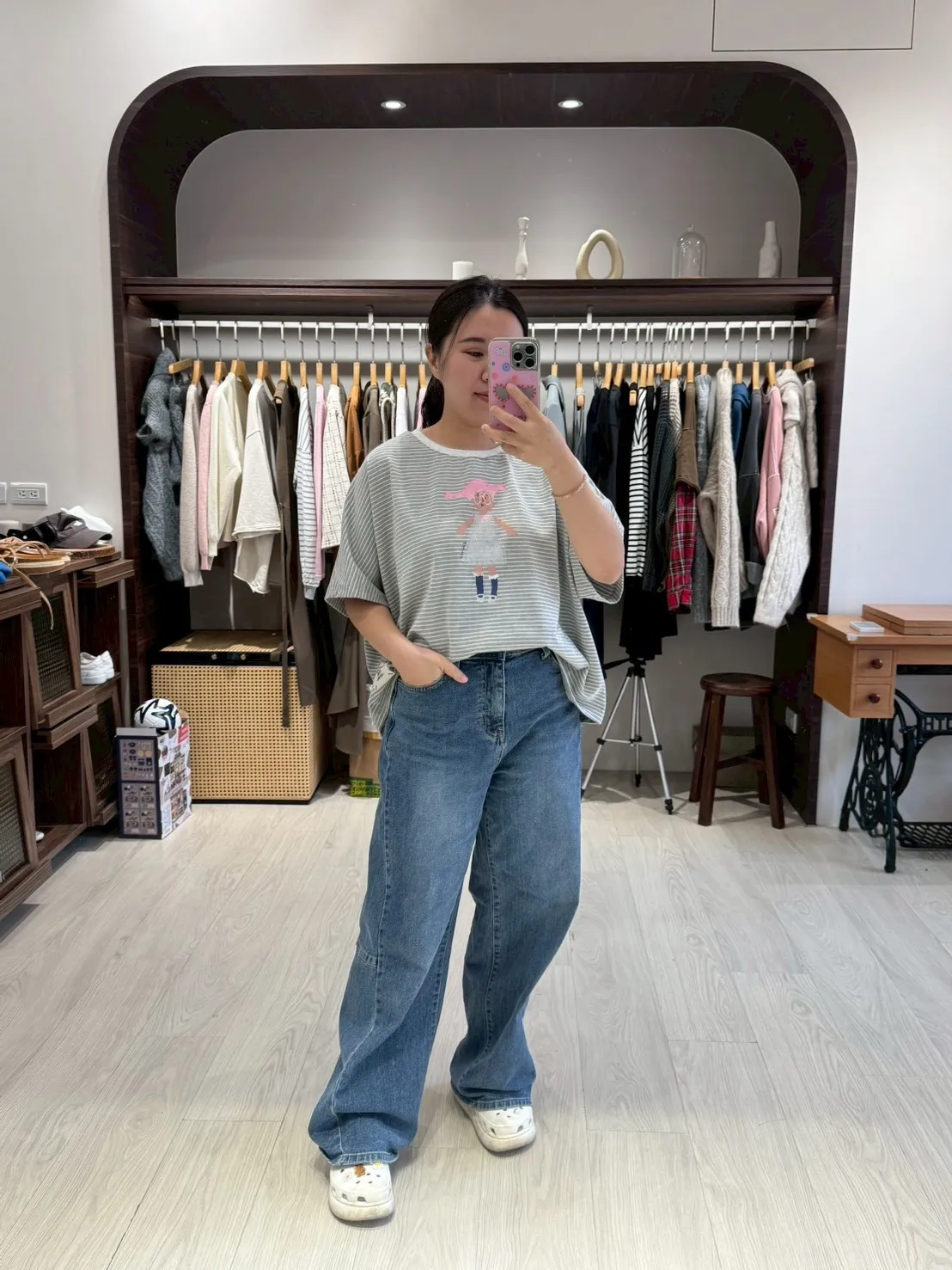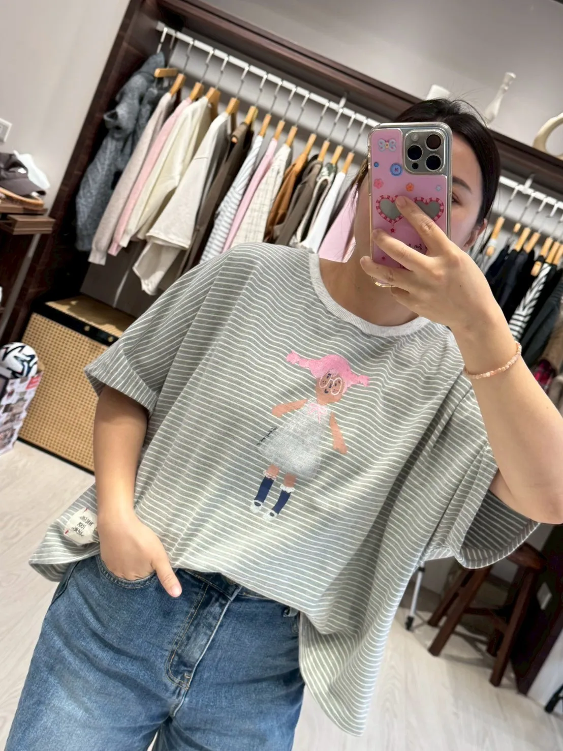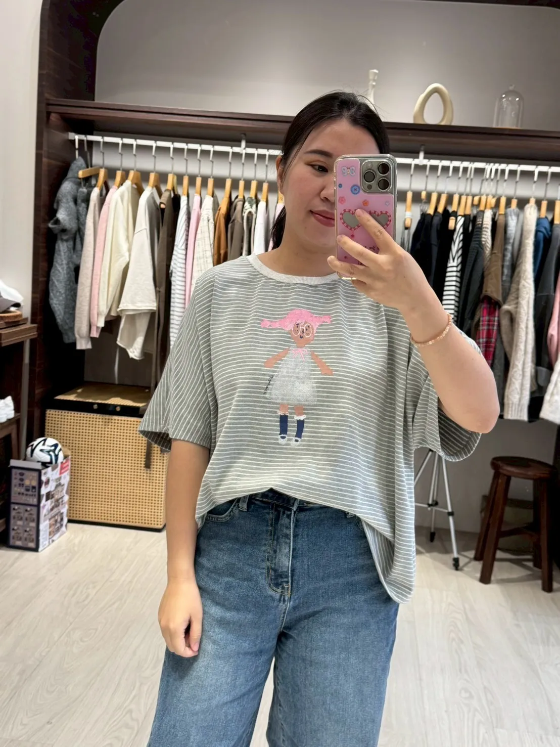KT60308 眼鏡小女孩橫紋T